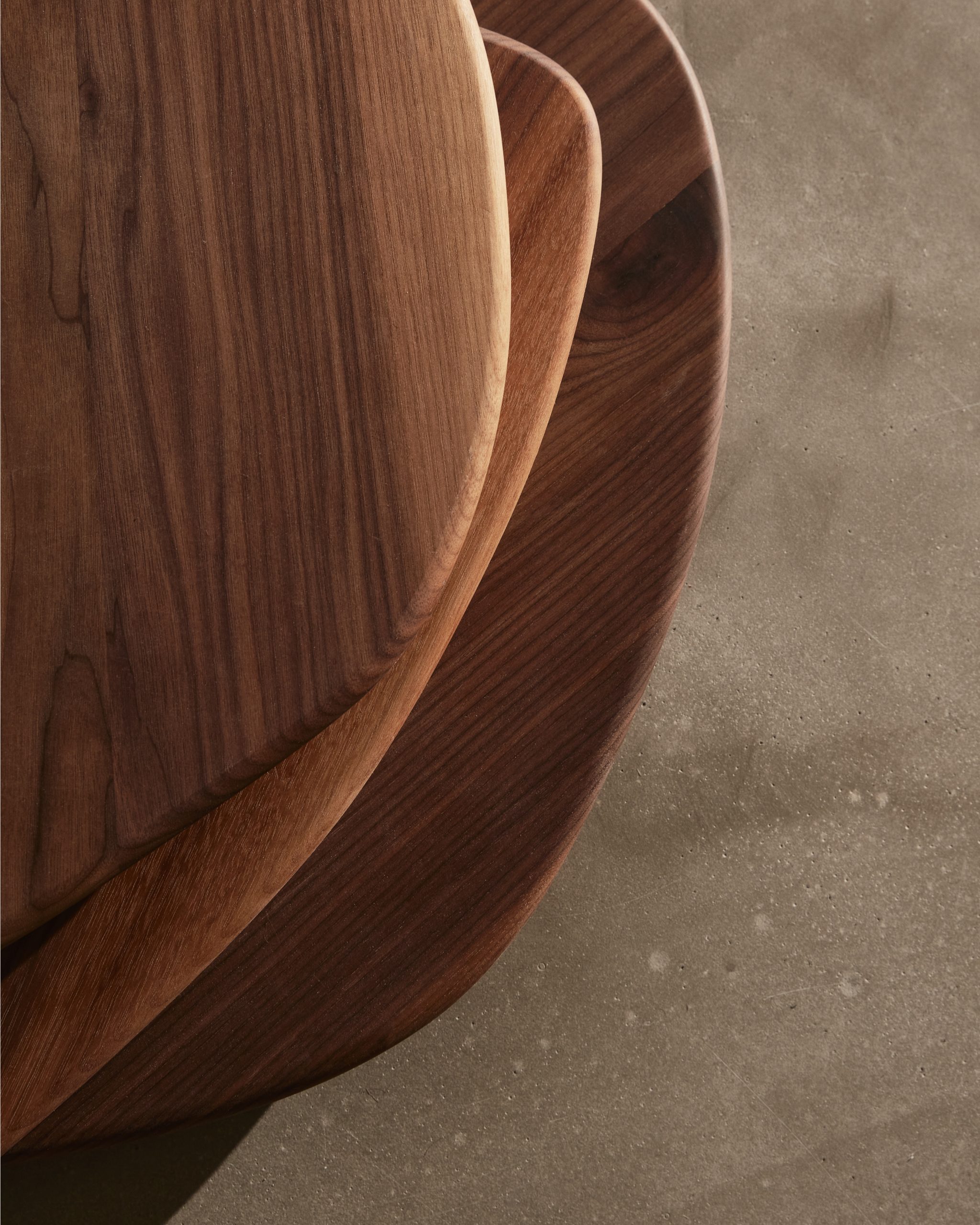 Inspired by pebbles – soft, round, quietly grounding. Pebble is a serving board made of oiled walnut wood, shaped by hand. It fits naturally in your hand, and you might want to touch it more often than necessary – if only the food on it didn’t look quite so good.