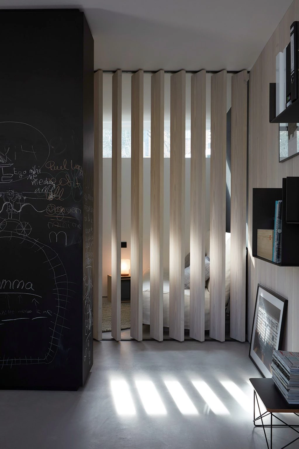 Most of the furniture in Villa H. was made to measure. Not to be special – but because nothing off the shelf really worked. The dining area, for example, was planned so that everyone would find their spot: space to look out, to sit back, to be together. The SIT bench and PUR table, both from Andrea Harbeck’s own collection, are made from smoked oak and align seamlessly with the architecture. Even the slatted wooden panels aren’t just visual – they shape how the space feels: open and protected at the same time. It’s these kinds of details that make a room feel like it belongs to someone. At PEAM, sustainability doesn’t start with a label – it starts with making things that truly fit.