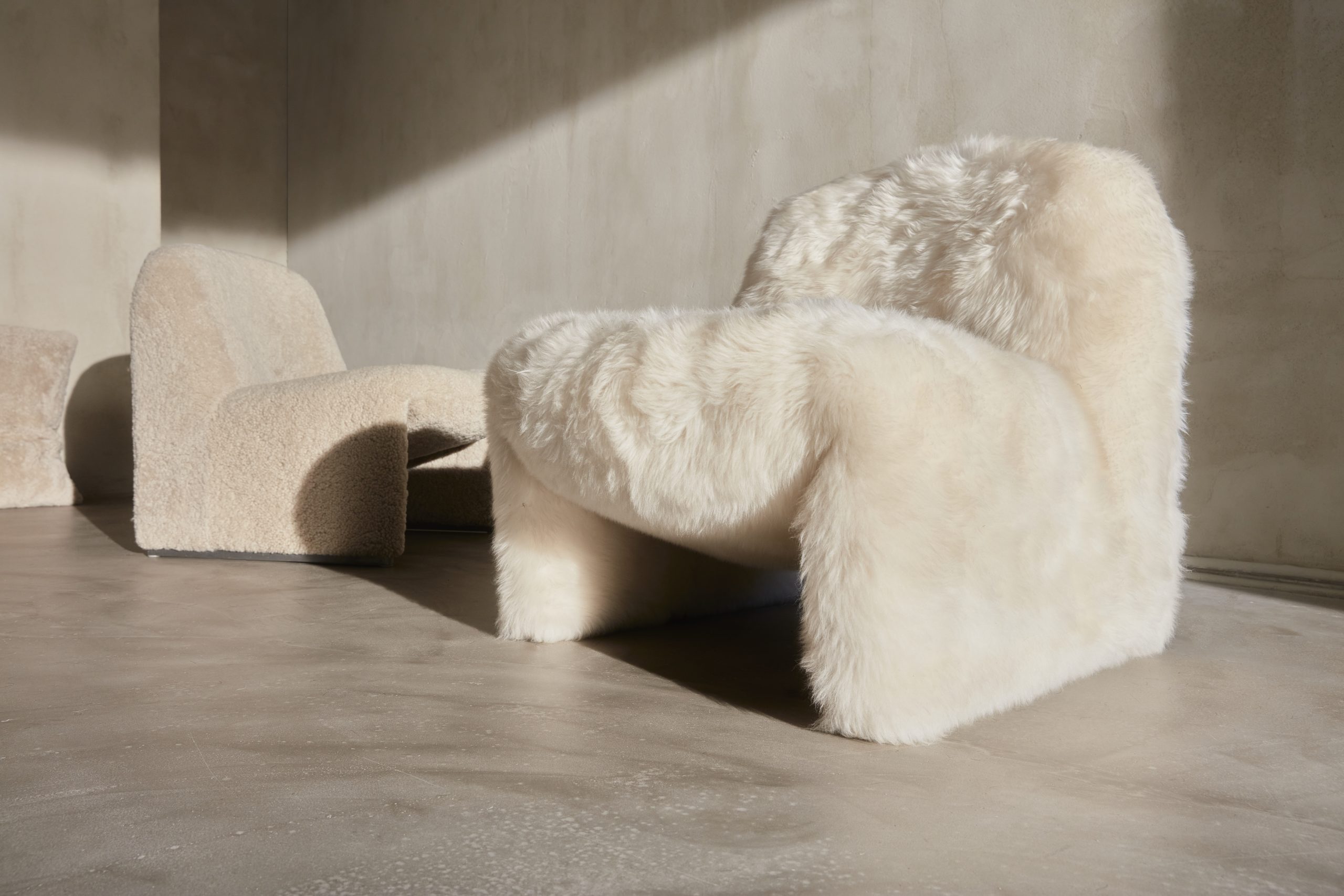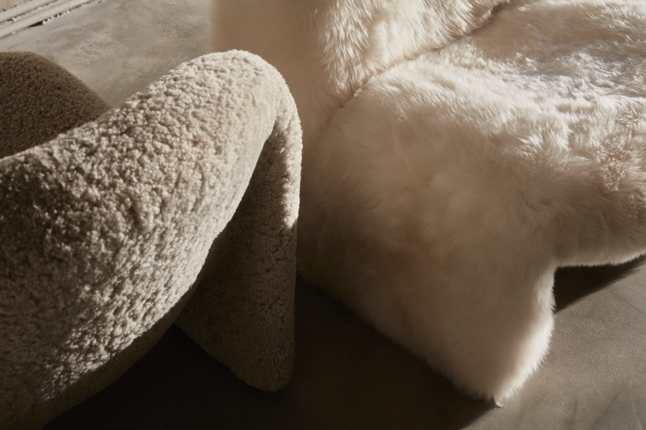 Diese beiden Lounge-Sessel stammen aus den 1970er-Jahren. Wir haben sie entdeckt, behutsam aufgearbeitet und mit echtem Schaffell neu bezogen. Beide bringen etwas Eigenes mit: Spuren der Zeit, eine schöne Form, gutes Material. Der eine trägt langes, glattes Fell. Der andere eine weich gelockte Variante.