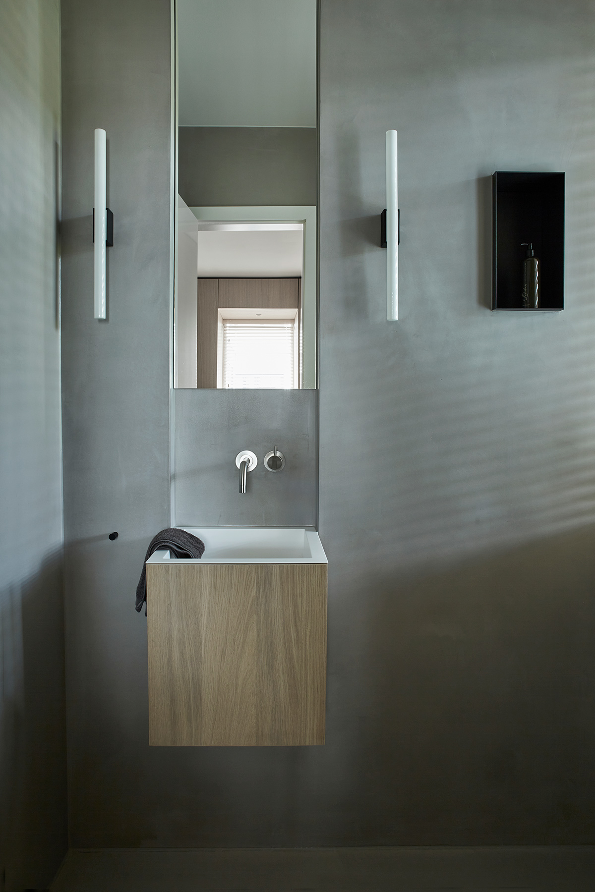 Auch in den übrigen Räumen ist alles bewusst gewählt: gespachtelter Zementboden, warme Eiche, Teppiche aus Naturfasern. Materialien, die altern dürfen. Möbel aus der .PEAM-Kollektion, fein gearbeitet, lokal gefertigt, ergänzen einzelne Vintagestücke mit Geschichte. Nichts schreit nach Aufmerksamkeit. Und gerade deshalb fügt sich alles. Was dieses Haus ausmacht, ist ein einzigartiges Gefühl, das sich einstellt, wenn man es betritt. Helligkeit. Klarheit. Die Schönheit der Ruhe.